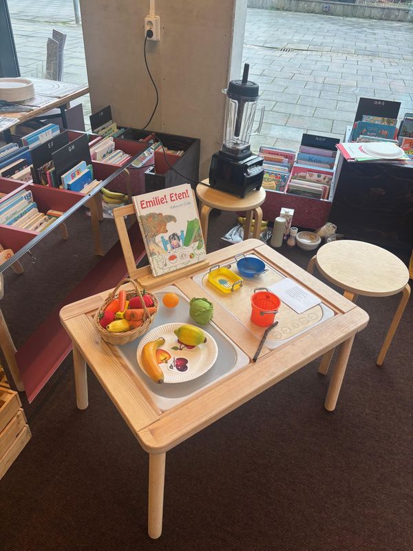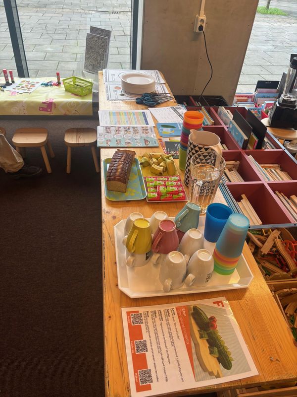 Unsere Woche begann in der Bibliothek Hoogkerk. Dort fand da Bilderbuchkino „Kleintje Koffie“ statt, welches das Vorlesen zu einem richtigen Erlebnis macht. Im heutigen Buch drehte sich alles um das Thema Essen, weshalb die Kinder währenddessen verschiedene Lebensmittel probieren durften – von süß bis sauer war alles dabei. Dadurch wurde die Geschichte noch viel greifbarer und lebendiger.