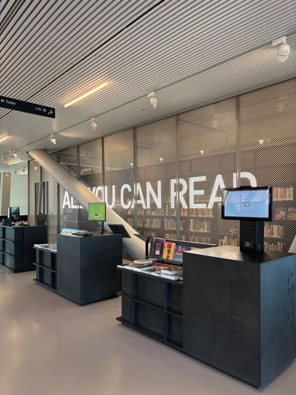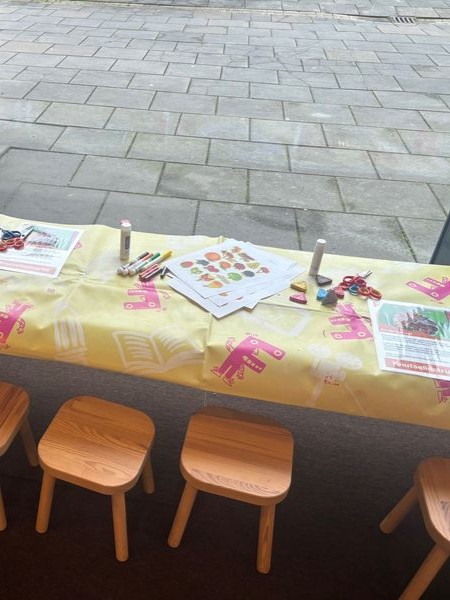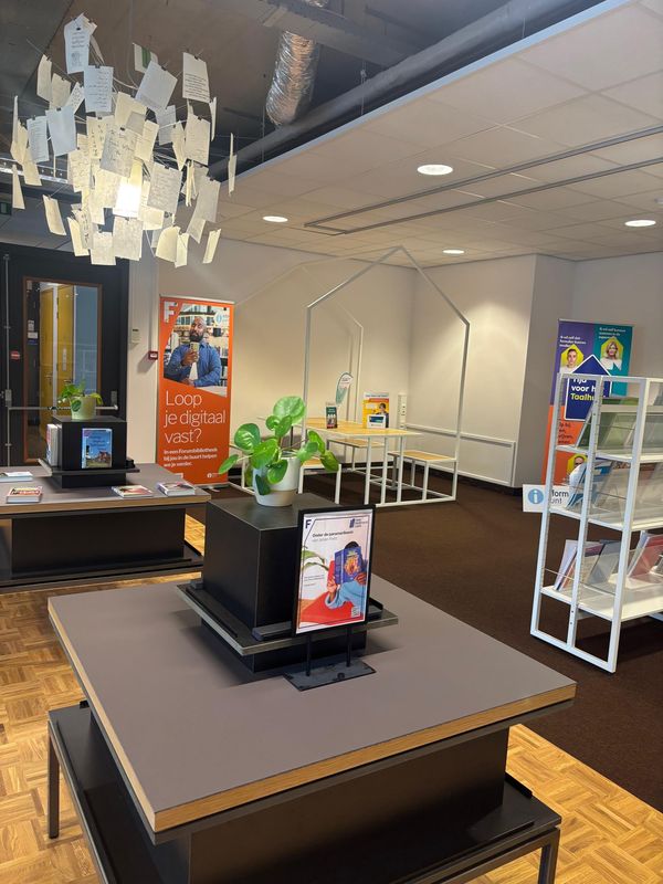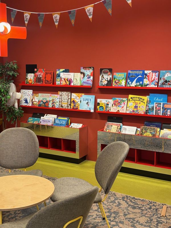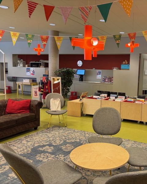 Nach dem Vorlesen blieb noch Zeit zum Malen und Stöbern, bevor es für uns weiter ins Forum ging. Dort haben wir uns mit Maurice über die verschiedenen Bibliotheksstandorte unterhalten. Spannend war vor allem, wie sehr sich die Arbeit hier von deutschen Bibliotheken unterscheidet. Ein Beispiel dafür wäre vor allem der Fokus, welchen die Büchereien haben. In Deutschland werden wir immer mehr zu dritten Orten, das heißt die Bücher rücken immer mehr in den Hintergrund. In den Niederlanden sind sie da schon viel weiter. Wir waren selber erstaunt wie wenig Bücher es im Forum gibt. Stattdessen wird viel Wert auf Lern- und Arbeitsplätze, Gemeinschaftsräume und Veranstaltungsorte gelegt.