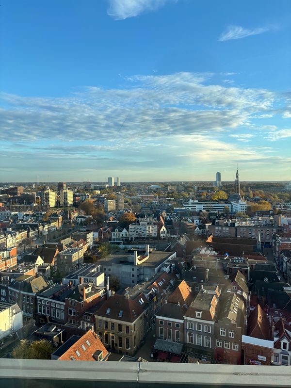 Am Nachmittag wollten wir eigentlich an einem 3D-Druck-Workshop teilnehmen. Leider war dieser komplett auf Niederländisch, sodass wir nicht wirklich folgen konnten. Stattdessen haben wir die Zeit genutzt, um das Forum noch weiter zu erkunden und dabei immer wieder neue Ecken entdeckt. Was bei einem 10-stöckigen Gebäude nicht verwunderlich ist. Man könnte wahrscheinlich mehrere Jahre dort arbeiten und doch hin und wieder neue Ecken entdecken. Wir nutzten die Gelegenheit, um noch einmal die Dachterrasse mit der Aussicht über ganz Groningen zu erkunden. Danach durfte ein Foto im Fotoautomat, welcher sich auch im Forum befindet nicht fehlen.