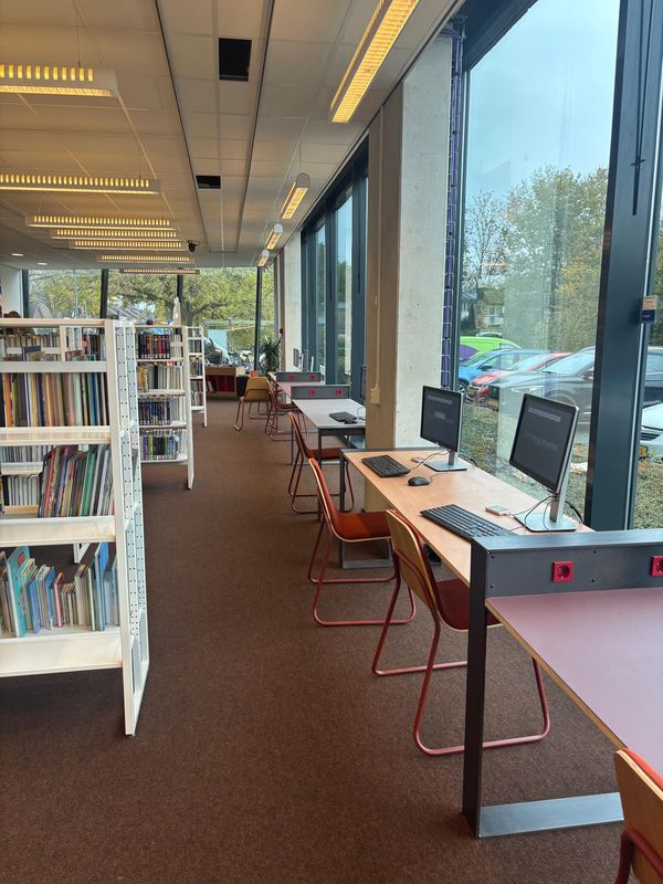 Am Dienstag durften wir den Bibliotheksalltag noch intensiver miterleben. Auf „Plein 3“ – der Etage mit Romanen, Krimis und auch ein paar deutschen Büchern – und später auch auf „Plein 8“ – wo sich die Sachbücher befinden – haben wir Bücher einsortiert, Vorbestellungen herausgesucht und verbucht. Besonders am Anfang mussten wir uns erst einmal zurechtfinden, da die Beschriftungen der Bücher teilweise ganz anders sind als bei uns.
